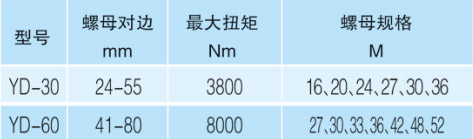 驱动式液压扭力扳手YD系列:我公司生产的YD型驱动扳手结构紧凑、体积小、输出扭力大,工作压力为600bar,扭力控制在3%范围内,能满足联接预紧高精度扭力值的要求,可调整支撑力臂,充分适应不同作业环境,四方型驱动轴可配合套筒头适合多种场所合使用。