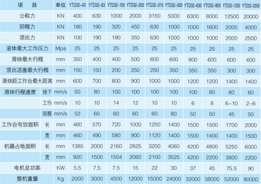 我公司生产制作的YTD32系列四立柱液压机适用于可塑性材料的压制工艺,如冲裁、弯曲、翻边、薄板拉伸等。也可从事于校正、压装、砂轮成型、冷挤金属零件成型,塑料制品及粉末制品的压制成型工艺。